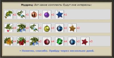 новогодний шар [4]-2 шт, новогодняя звезда [1]-3 штИ кстати, это не весь квест - это только часть общего квеста) Удачи в этом квесте!